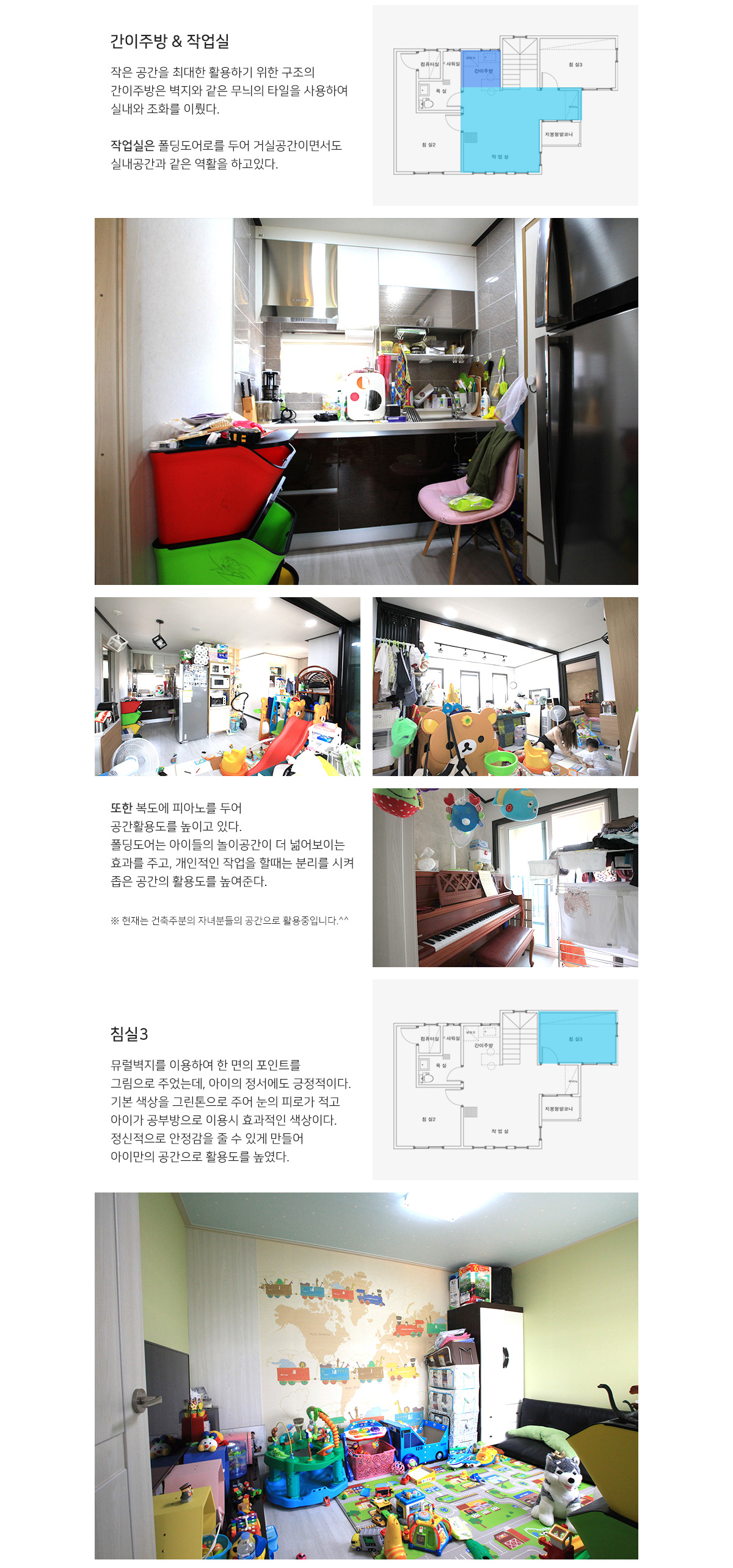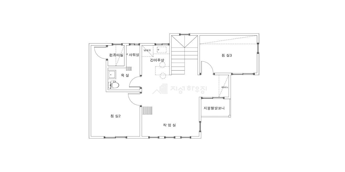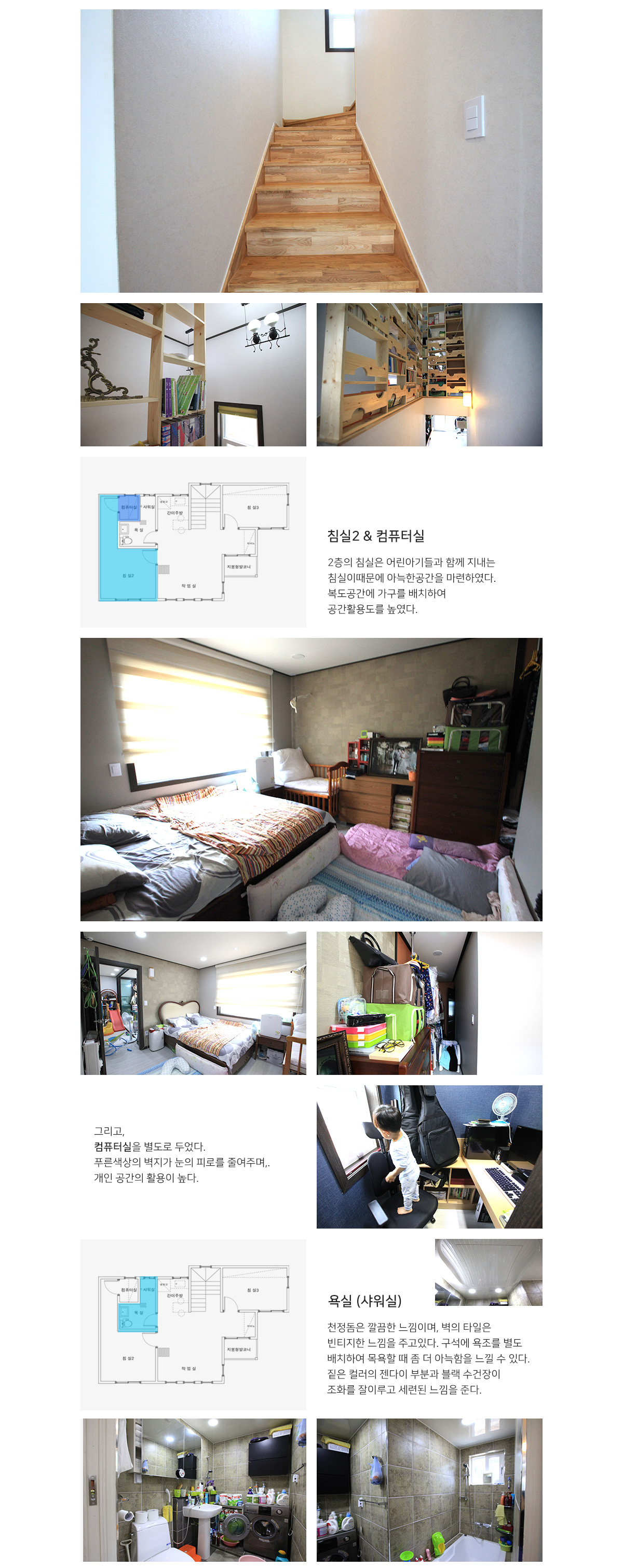 | 2F | 2층 구성: 침실2,침실3, 욕실, 컴퓨터실, 작업실, 간이주방 |