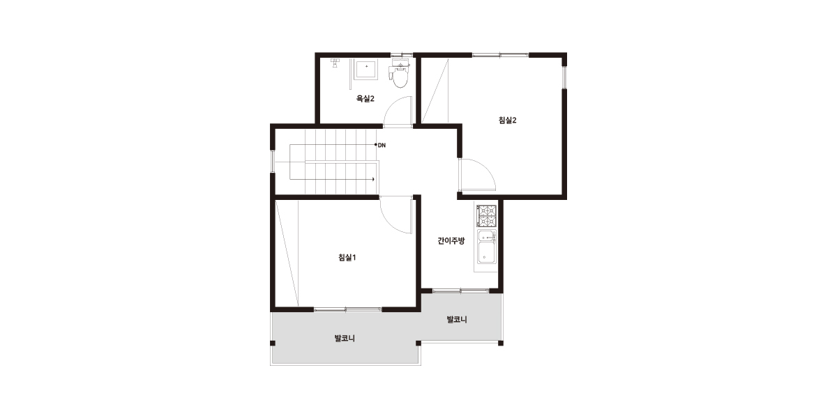 | 2F | 2층 구성: 안방, 침실2, 간이주방, 욕실 |