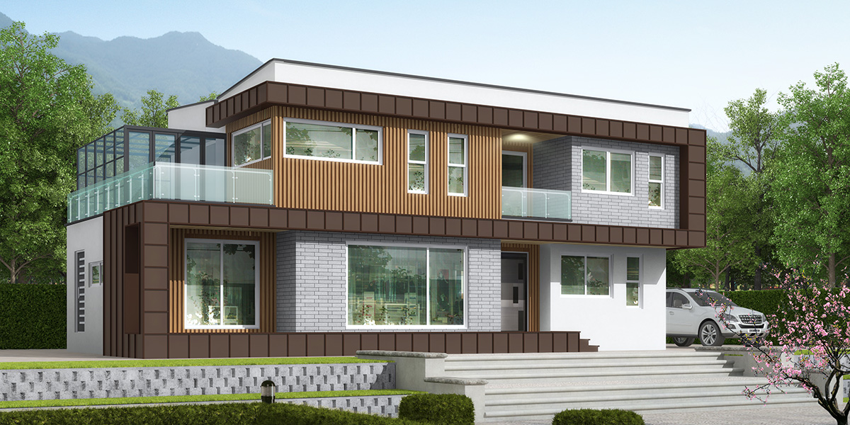 | 2층면적 | 80.58㎡ (24.38py) | 외부마감 | 테라코트(플렉시텍스), 탄화목사이딩, 리얼징크 |