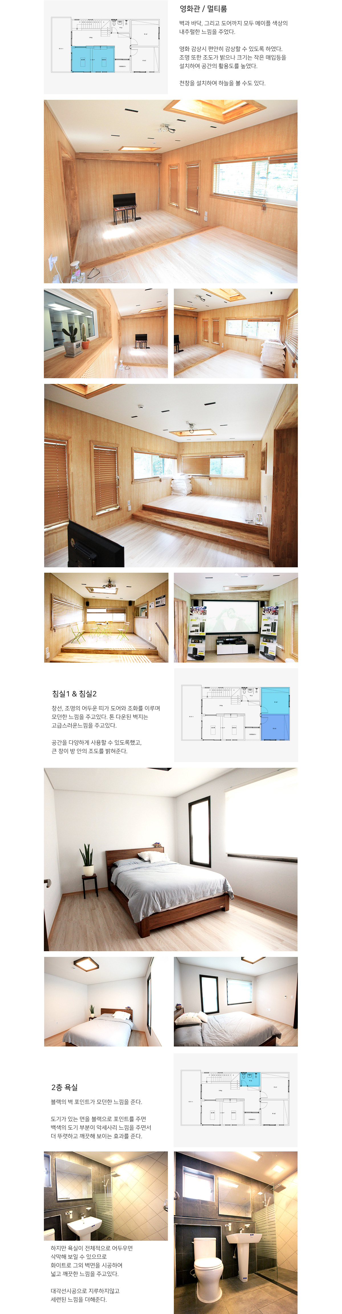| 2F | 2층 구성: 멀티룸, 영화관, 가족실, 욕실, 침실1, 침실2 |