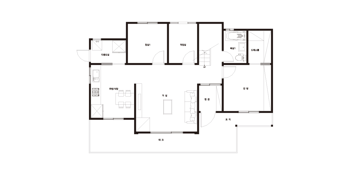 | 1층포치 / 데크 | 5.40㎡ (1.63py) / 20.75㎡ (6.28py) | 창호 | 시스템창호 |