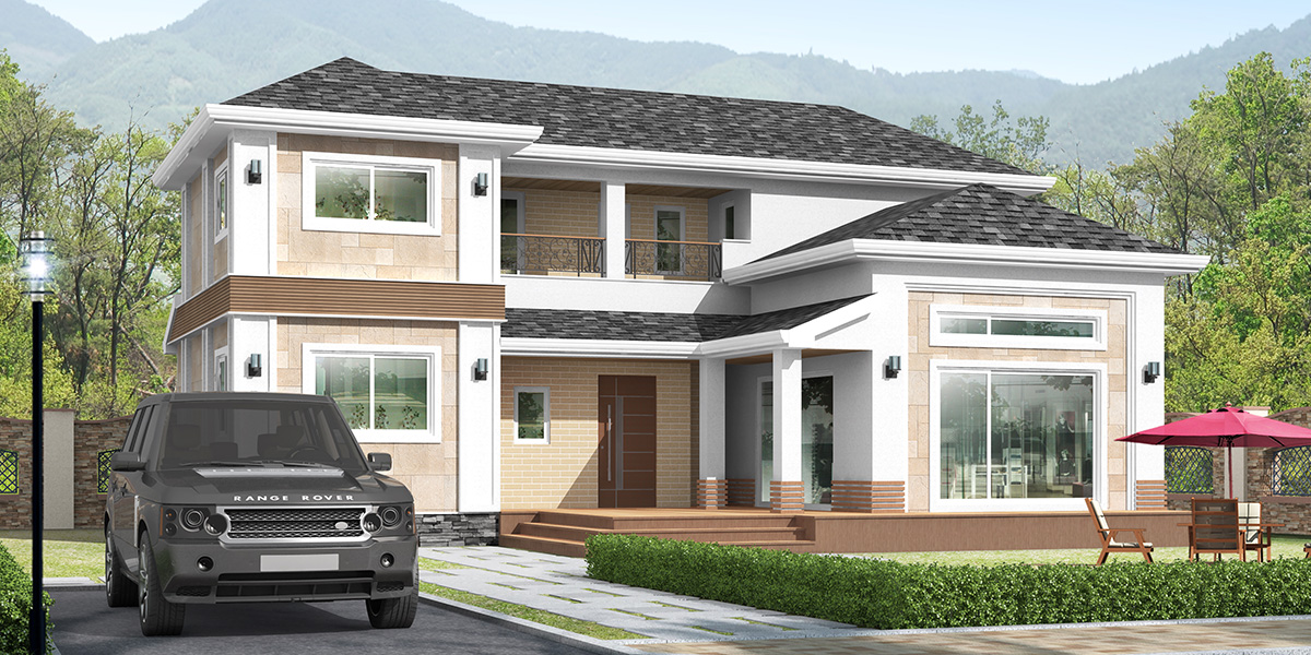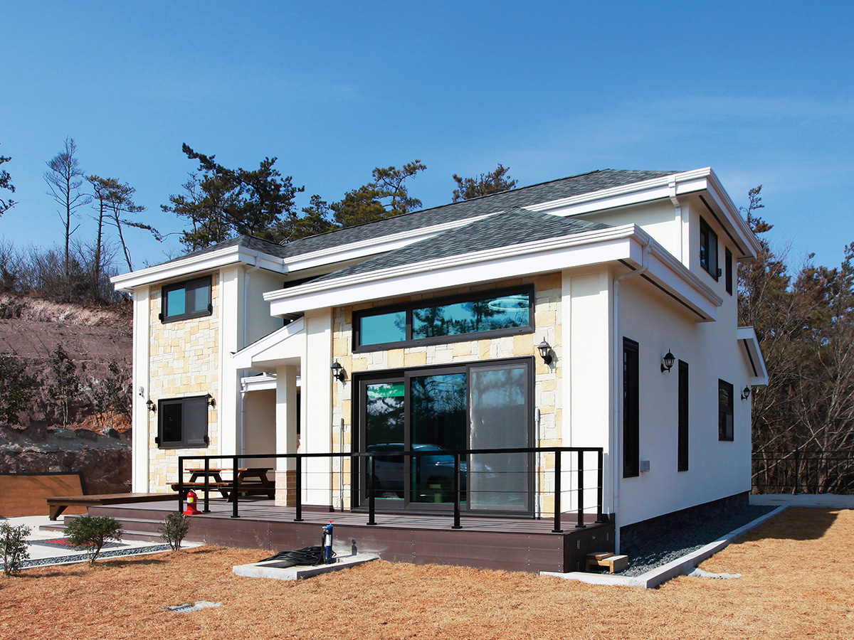 석재타일과 탄화목 사이딩으로 포인트를 더해 웅장한 느낌을 살리고