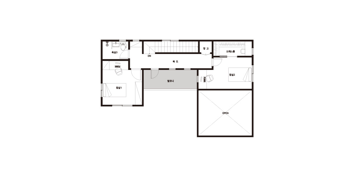 | 2F | 2층 구성: 침실1, 침실2, 욕실3, 드레스룸, 창고 |