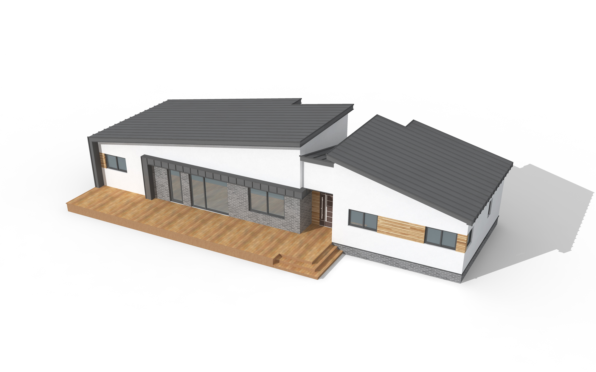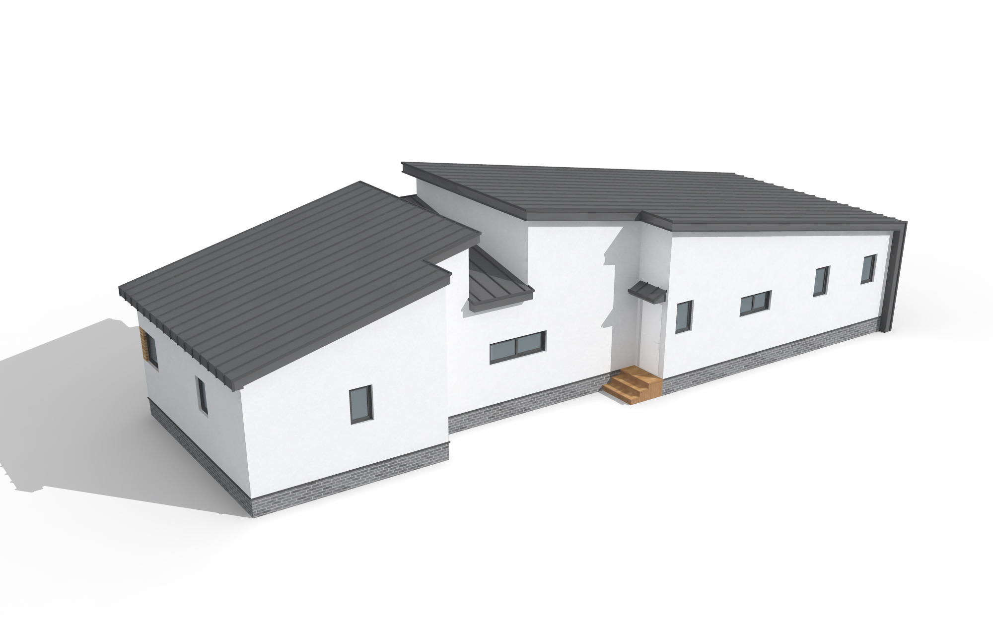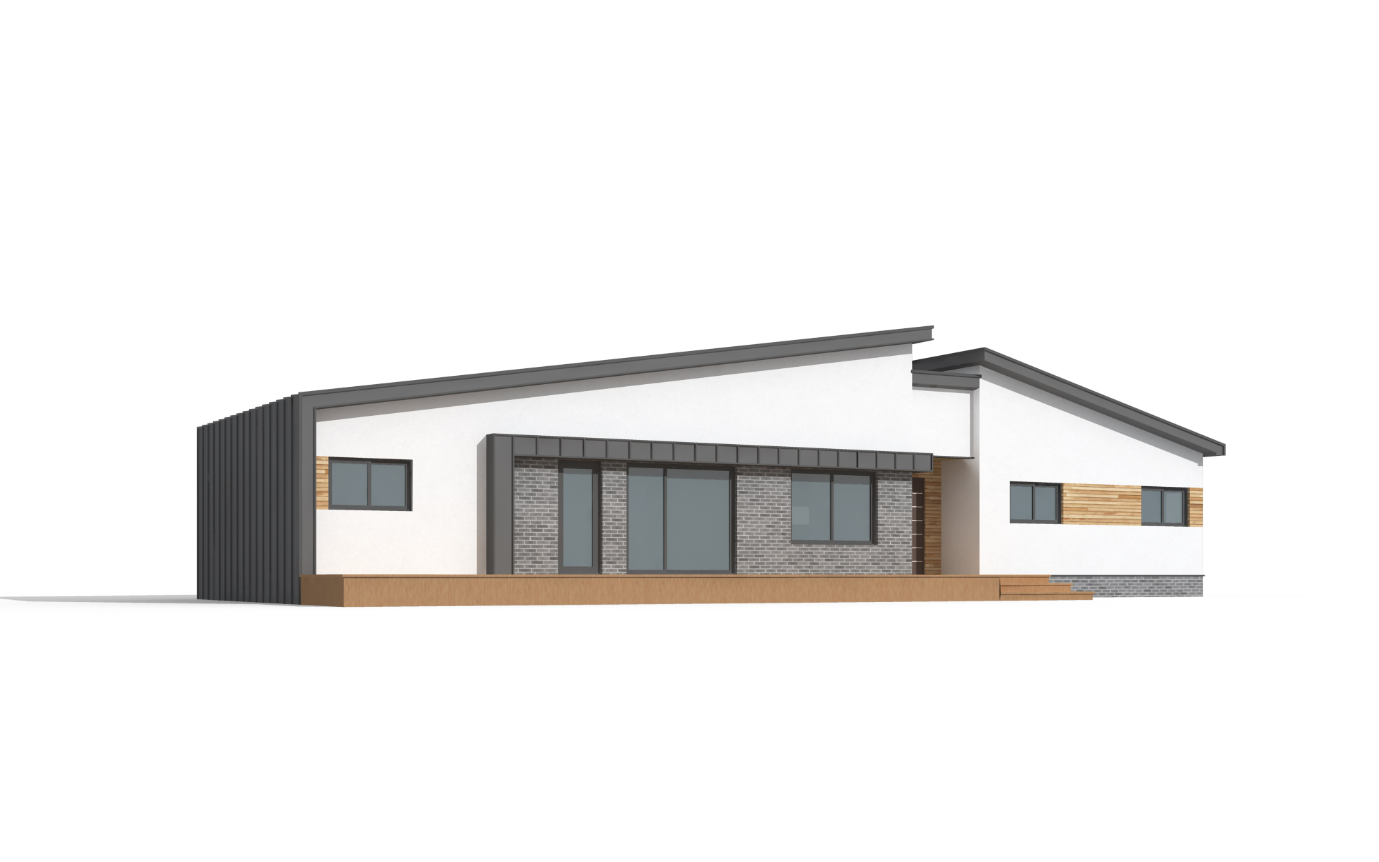 긴 형태의 단층주택으로 징크와 목재 사이딩을 포인트로 한 모던스타일 주택입니다.