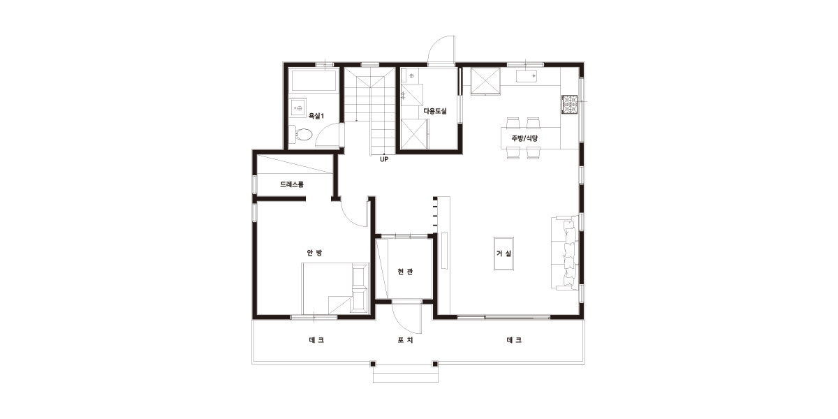 | 1층포치 / 데크 | 4.00㎡ (1.21py) / 12.75㎡ (3.89py) | 창호 | 시스템창호 |
