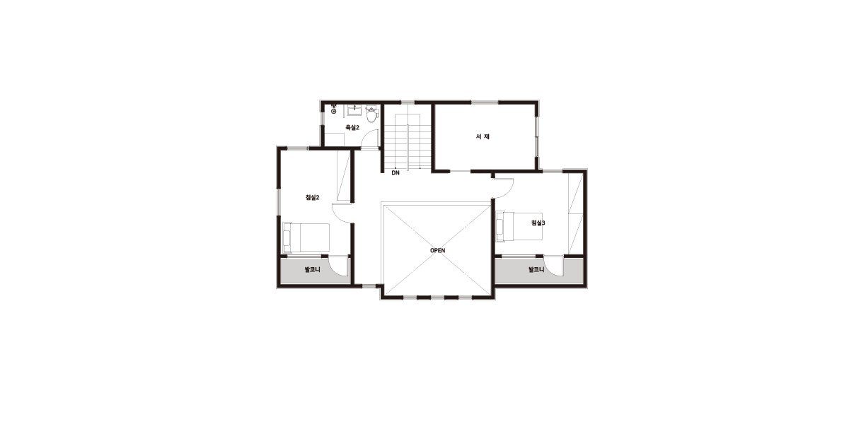 | 2F | 2층 구성: 침실2, 침실3, 서재, 욕실2 |