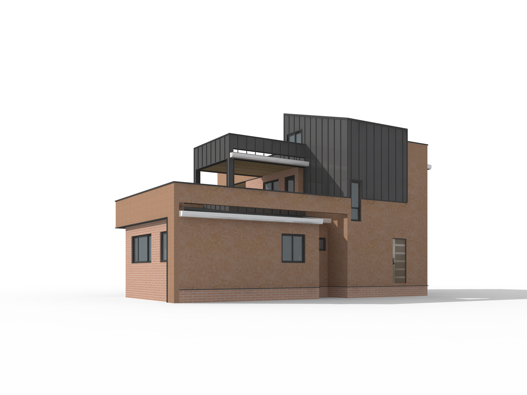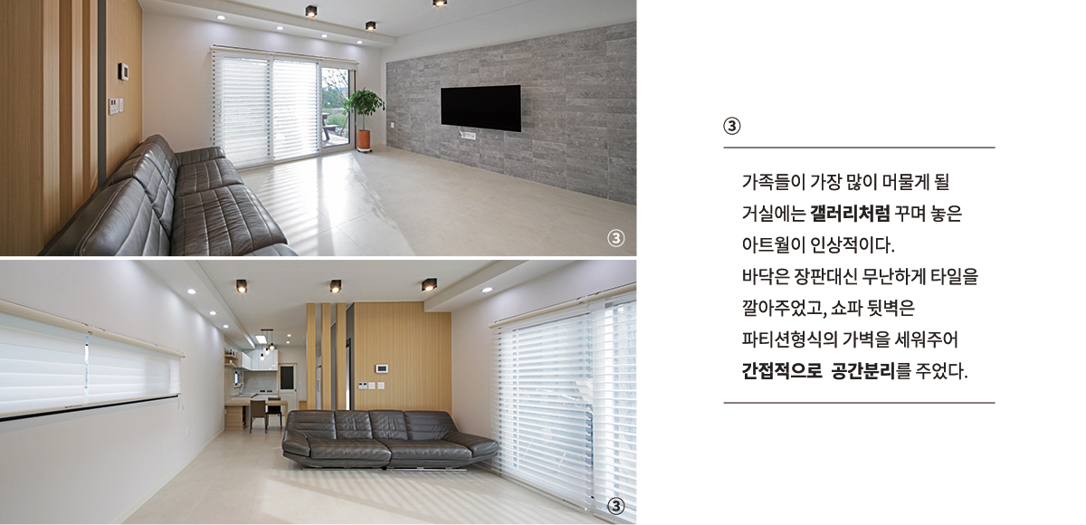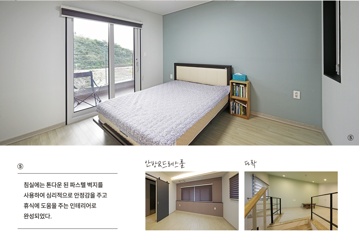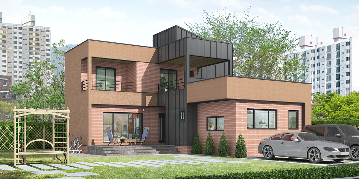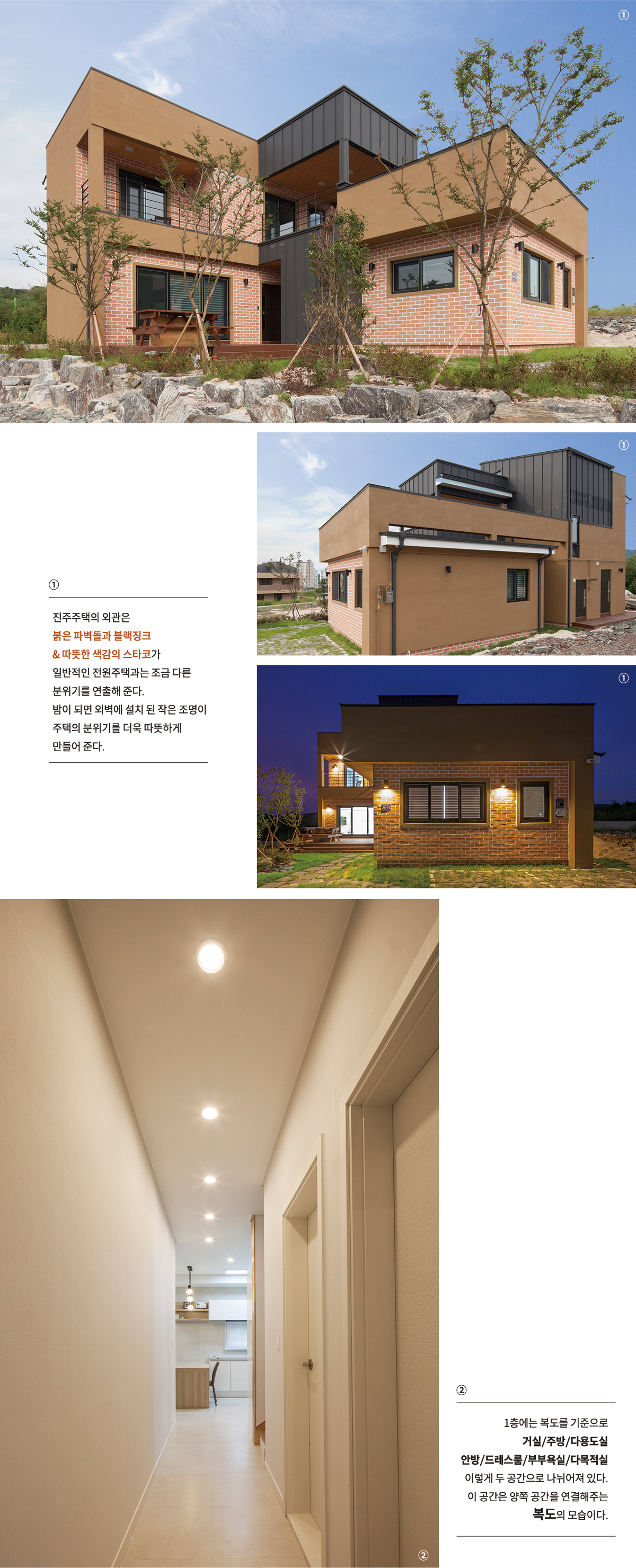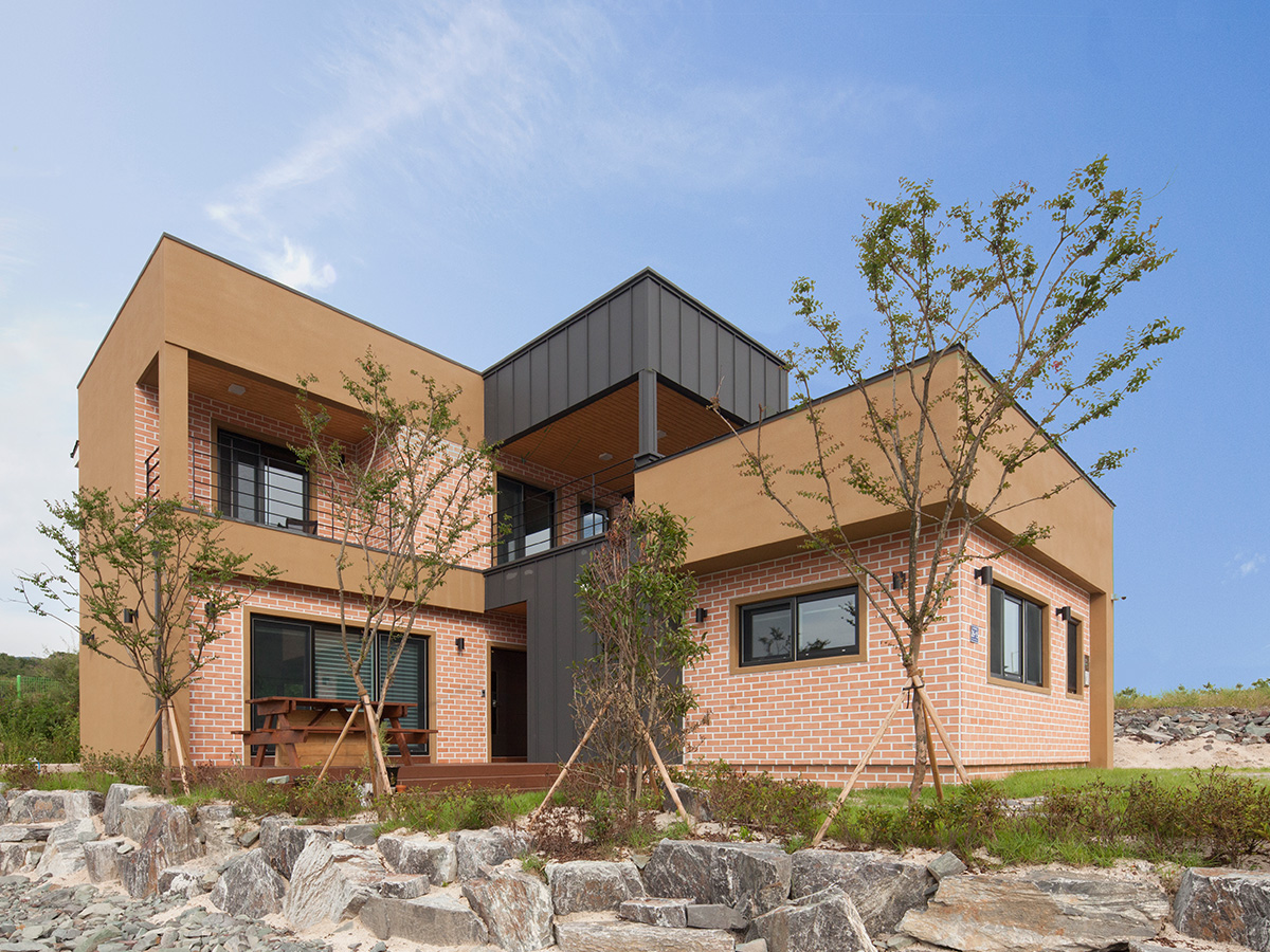 진주 혁신도시 단지계획에 맞춰 설계된 단독주택이며, 박스 형태의 가벽 시공으로 모던함을 강조했다.