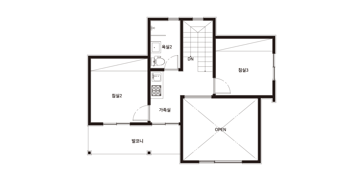 | 2F | 2층 구성: 침실2, 침실3, 가족실, 욕실2 |