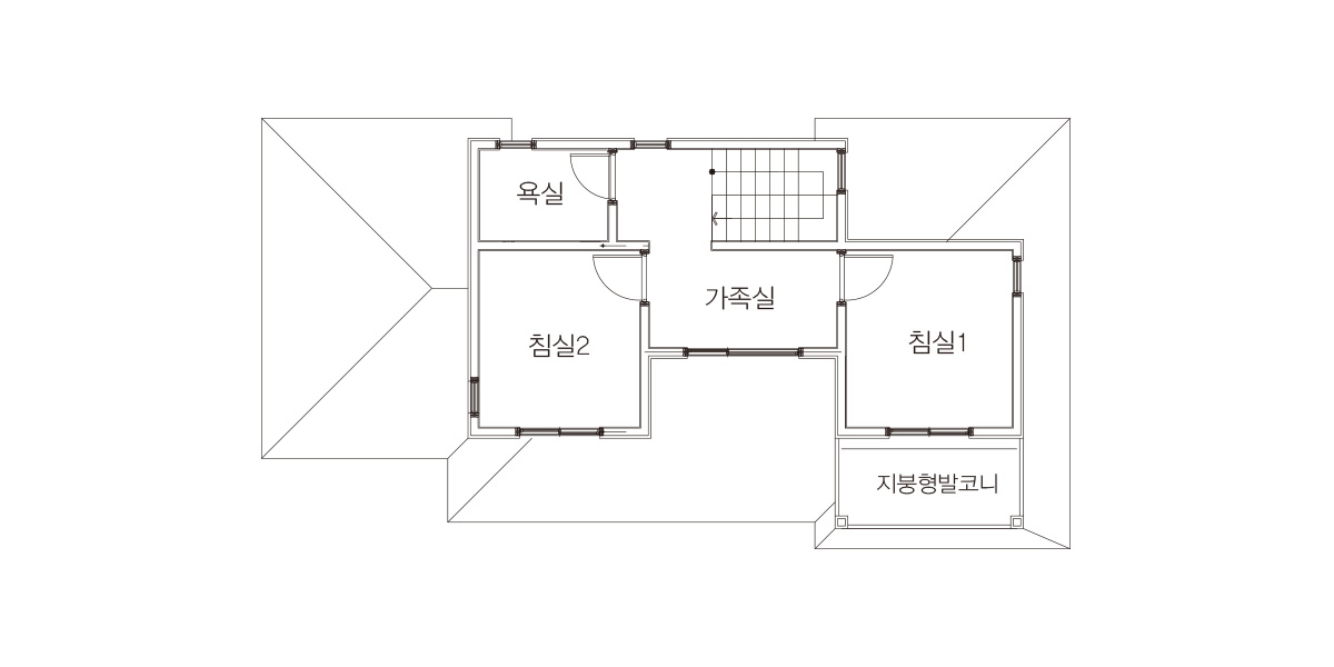 | 2F | 2층 구성: 가족실, 침실1, 침실2, 욕실, 지붕형발코니 |