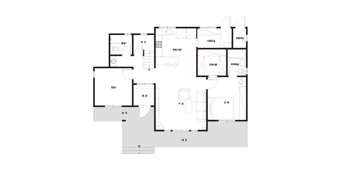 | 1층포치 / 데크 | 3.77㎡ (1.14py) / 26.03㎡ (7.87py) | 창호 | 시스템창호 |