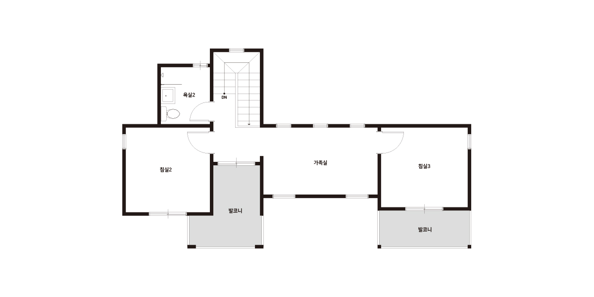 | 2F | 2층 구성: 침실2, 침실3, 가족실, 욕실 |