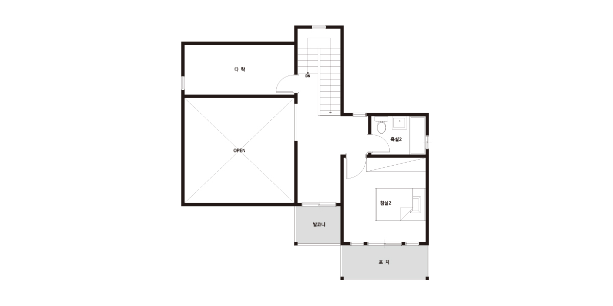 | 2F | 2층 구성: 침실2, 가족실, 욕실 |