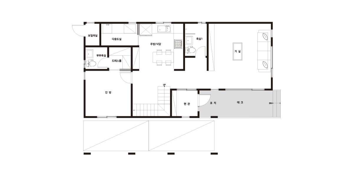 | 1층포치 / 데크 | 31.18㎡ (9.43py) / 11.76㎡ (3.56py) | 창호 | 시스템창호 |