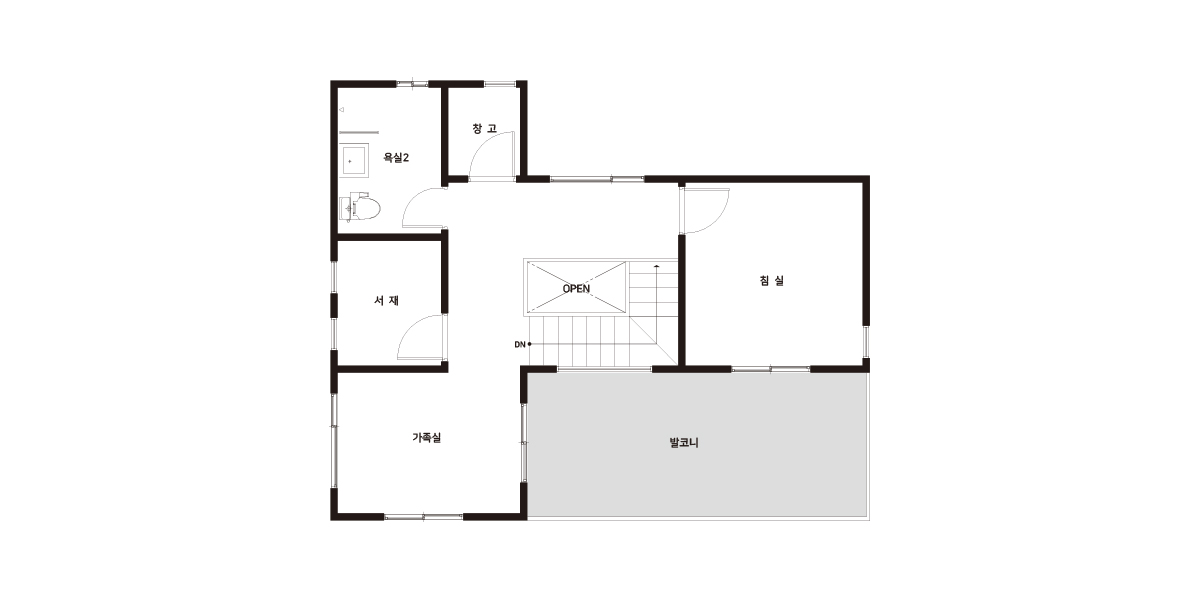 | 2F | 2층 구성: 가족실, 서재, 욕실, 창고, 침실 |