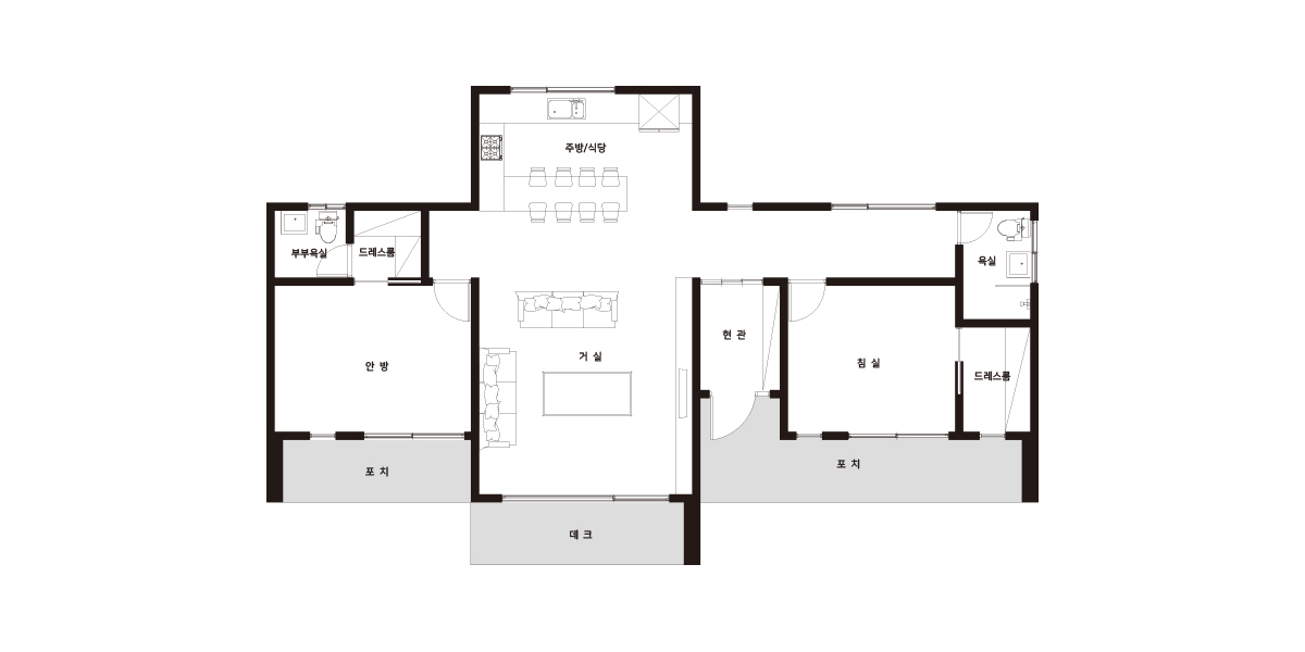 | 1층포치 / 데크 | 57.24㎡ (17.32py) / 8.48㎡ (2.57py) | 창호 | 시스템창호 |