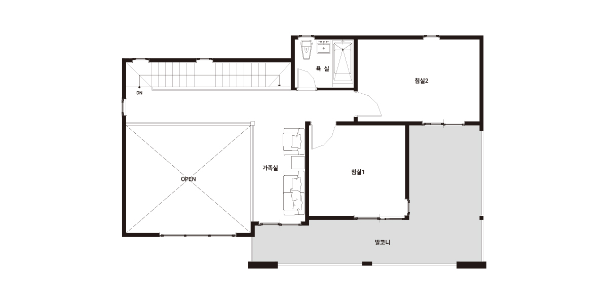 | 2F | 2층 구성: 침실2, 욕실, 다락, 간이응접실 |