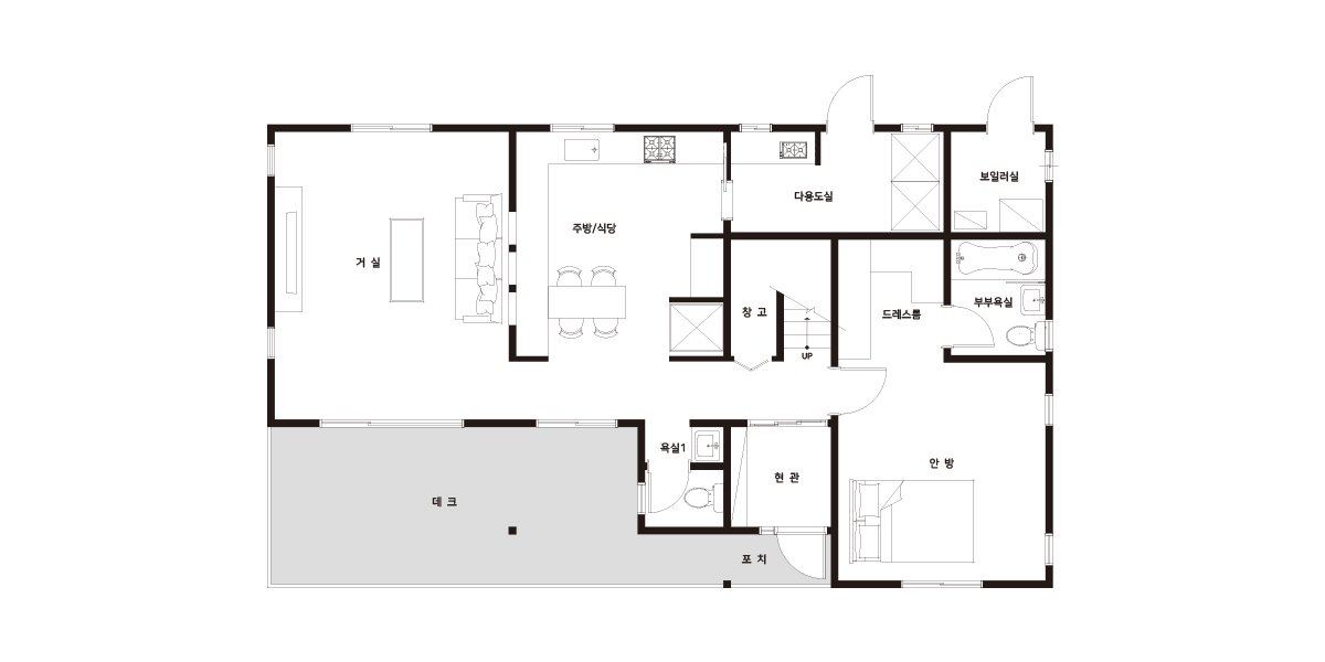 | 1층포치 / 데크 | 6.80㎡ (2.06py) / 24.30㎡ (7.35py) | 창호 | 시스템창호 |