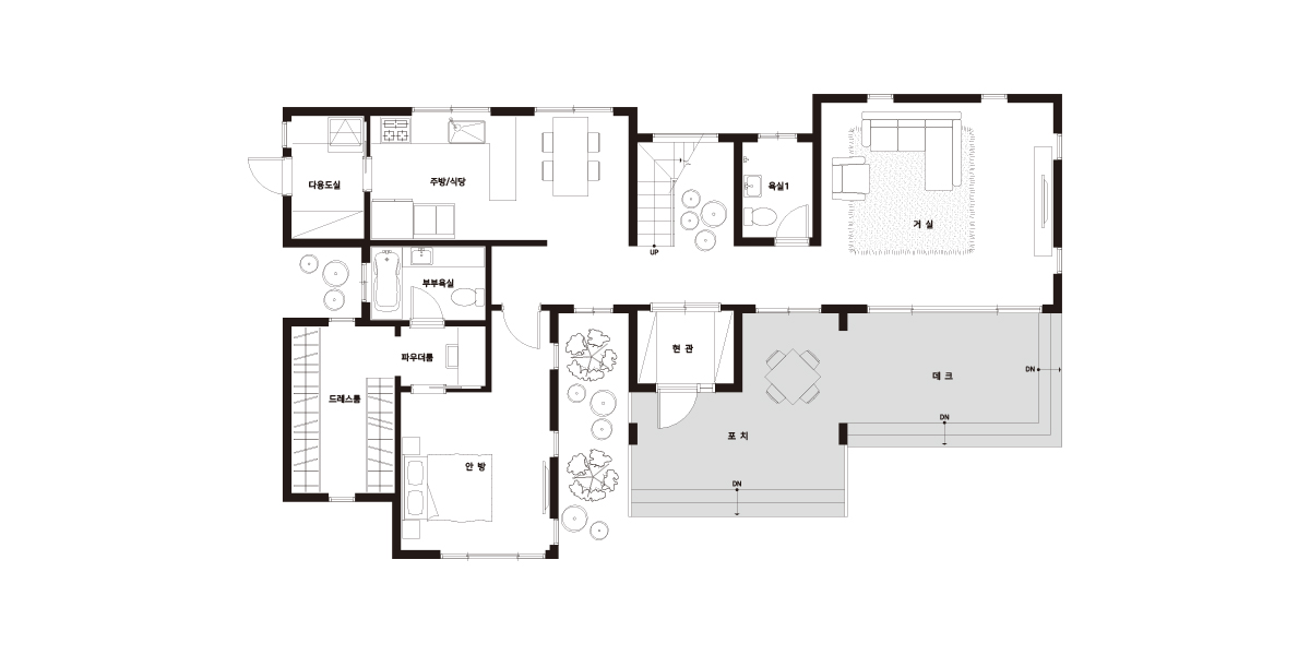 | 1층포치 / 데크 | 5.44㎡ (1.65py) / 27.68㎡ (8.37py) | 창호 | 시스템창호 |