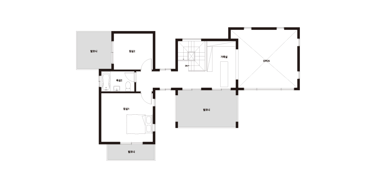 | 2층발코니 / 베란다 | 22.80㎡ (6.90py) | 다락 / 거실오픈 | - / 1.5층 오픈 |