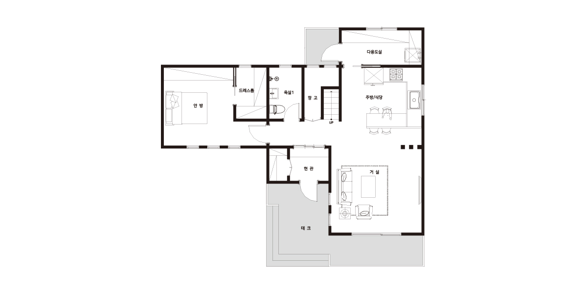 각 실의 크기를 전반적으로 넓게 구성하였고