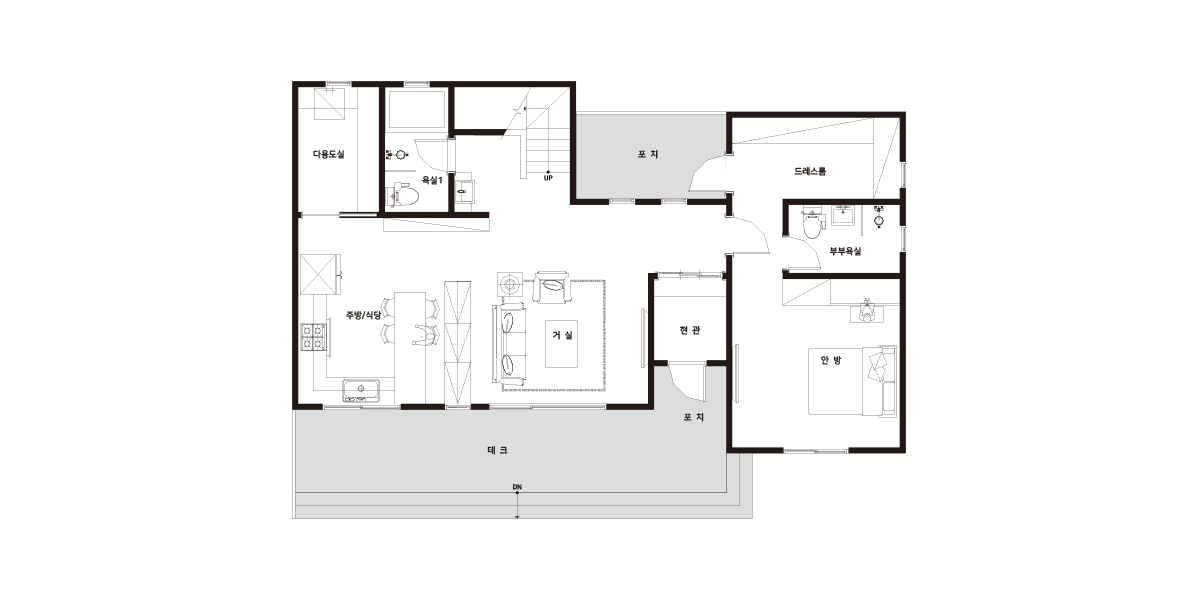 | 1층포치 / 데크 | 9.00㎡ (2.72py) / 20.60㎡ (6.23py) | 창호 | 시스템창호 |