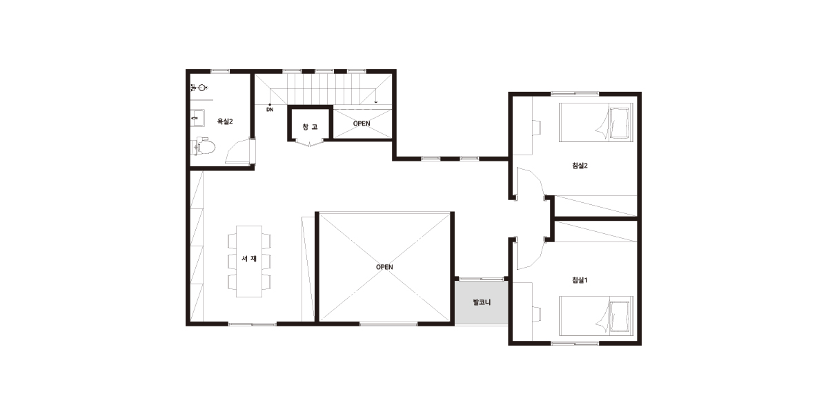 | 2F | 2층 구성: 침실1, 침실2, 서재, 화장실3, 창고 |