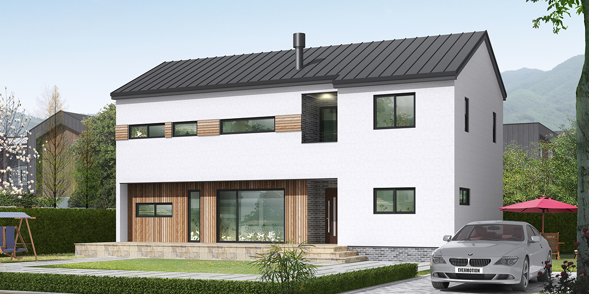 심플한 모던 형태의 4인 가족을 위한 도심형 주택