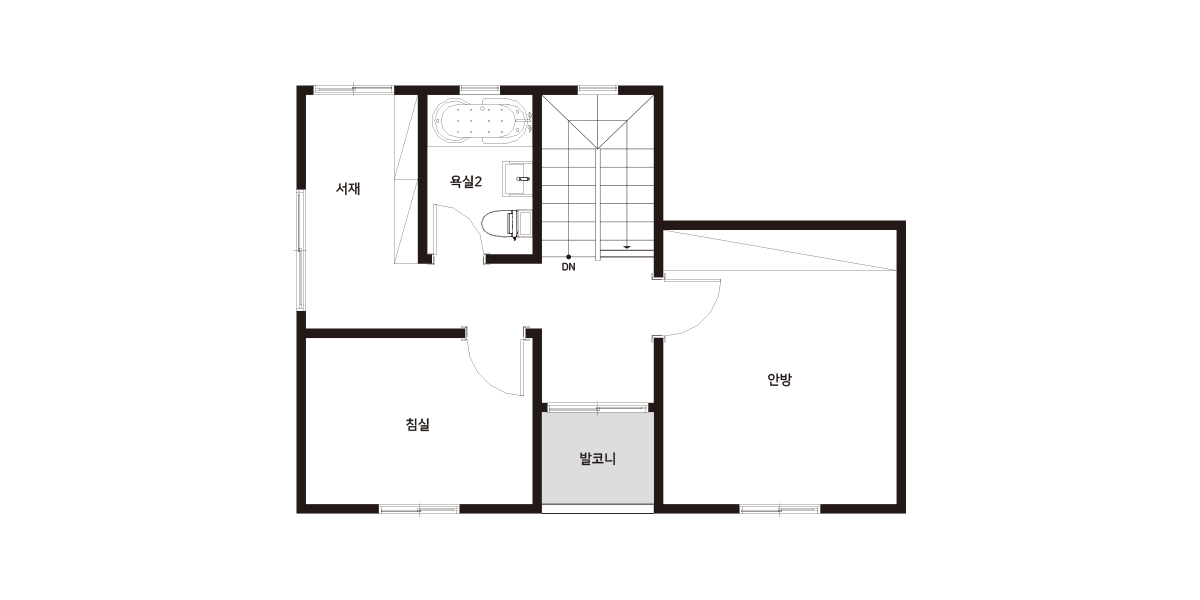 2층은 방으로 계획하여 명확한 공간 분리를 통해 최대 면적을 확보