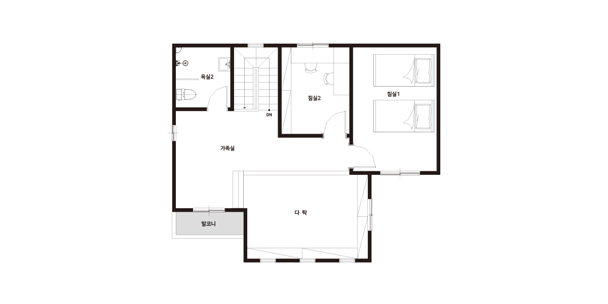 | 2F | 2층 구성: 침실1, 침실2, 가족실, 다락, 화장실2 |