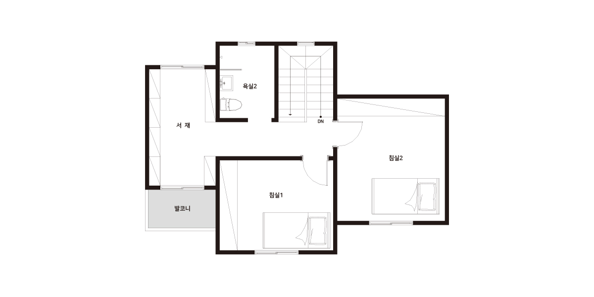 | 2F | 2층 구성: 침실1, 침실2, 서재, 화장실3, 포치 |