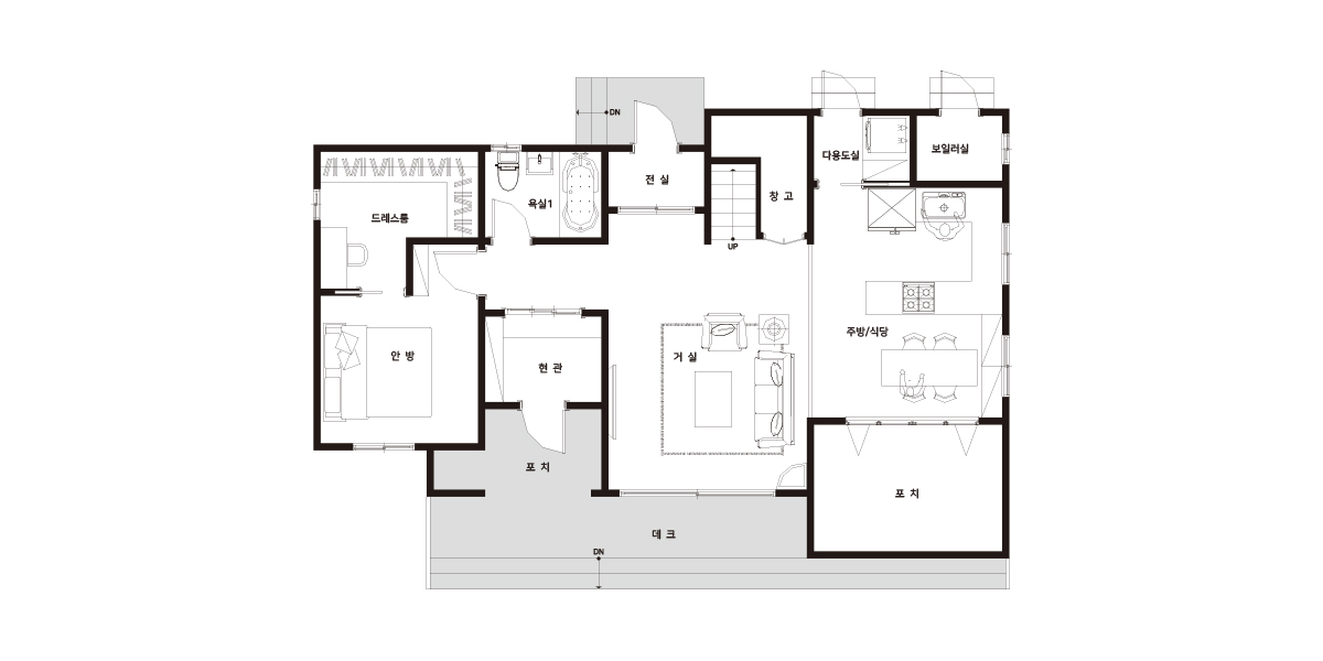 | 1층포치 / 데크 | 4.98㎡ (1.51py) / 15.68㎡ (4.74py) | 창호 | 시스템창호 |