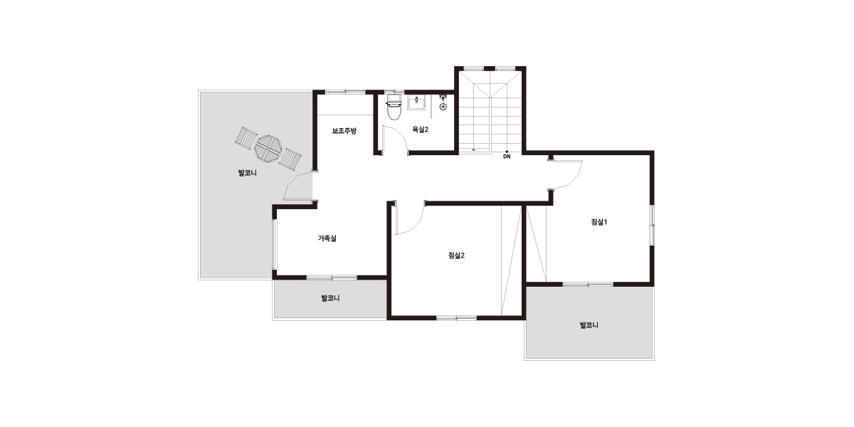 | 2F | 2층 구성: 침실1.2, 가족실, 화장실2, 발코니 |