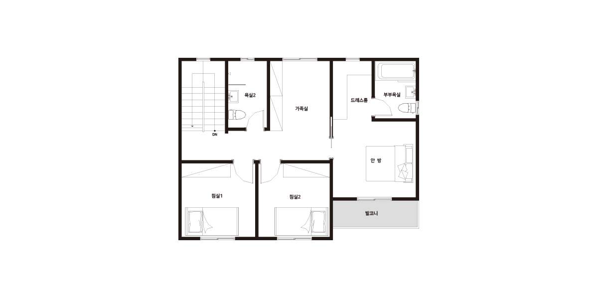 | 2F | 2층 구성: 안방, 드레스룸, 침실1.2, 가족실, 화장실2.3 |