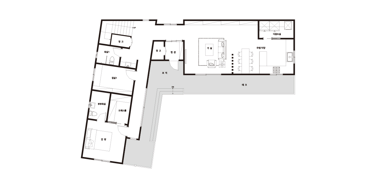 | 1층포치 / 데크 | 4.13㎡ (1.25py) / 34.10㎡ (10.32py) | 창호 | 시스템창호 |