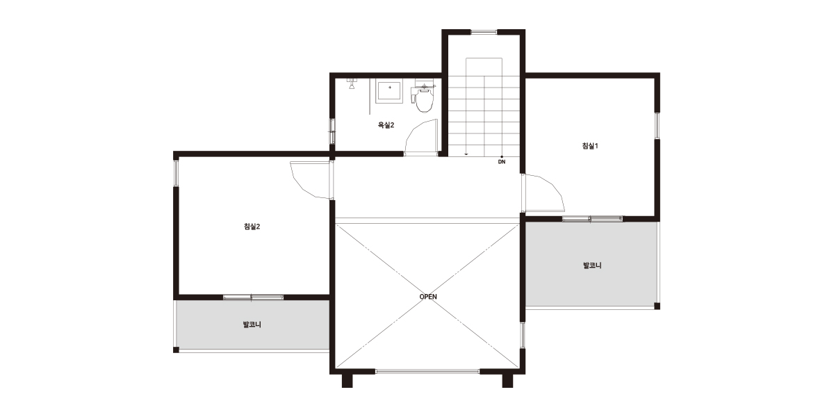 | 2F | 2층 구성: 침실1, 침실2, 욕실2 |