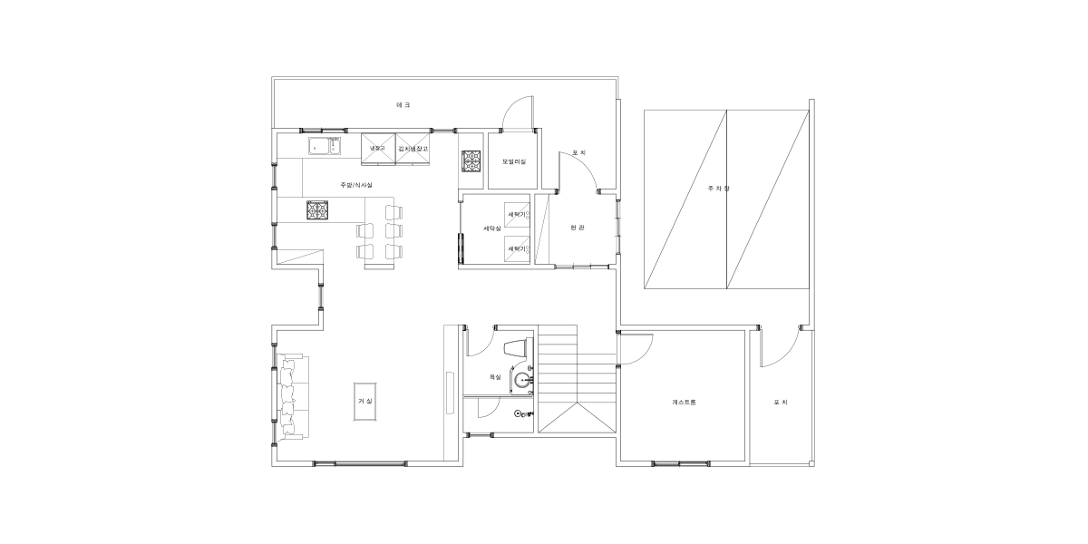 | 1층포치 / 데크 | 10.58㎡ (3.20py) / 14.40㎡ (4.36py) | 창호 | 시스템창호 |
