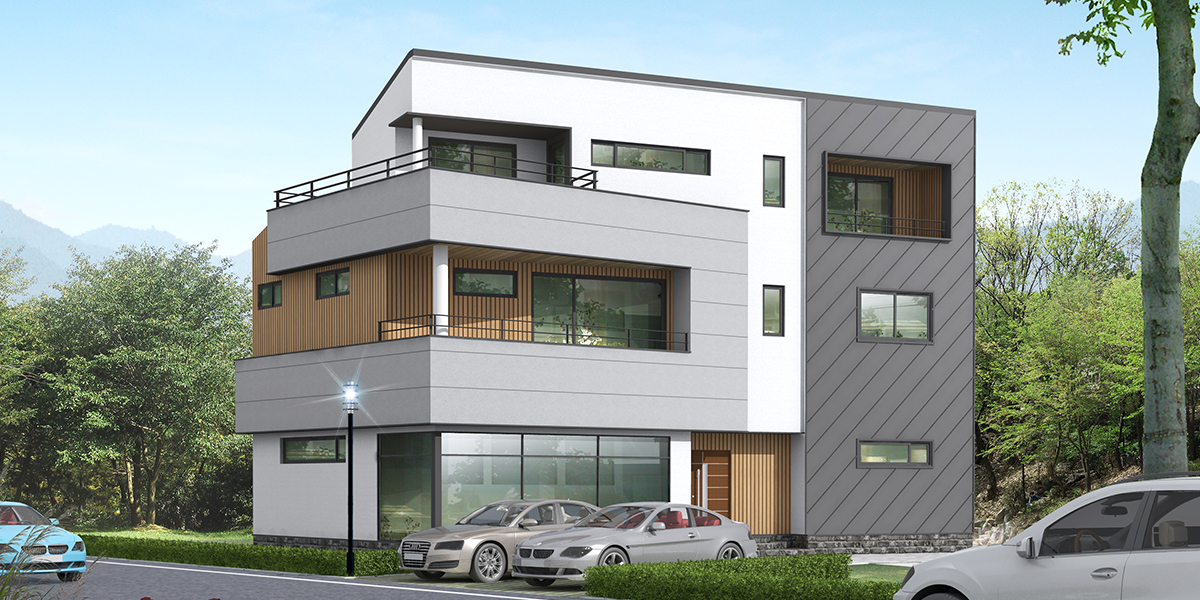 | 2층면적 | 90.18㎡ (27.28py) | 외부마감 | 알루미늄징크, AXSON사이딩, 테라코트(플렉시텍스), 탄화목사이딩 |