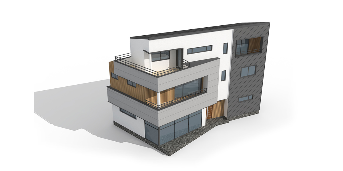 대지의 형태에 맞게 건축물 디자인 형성