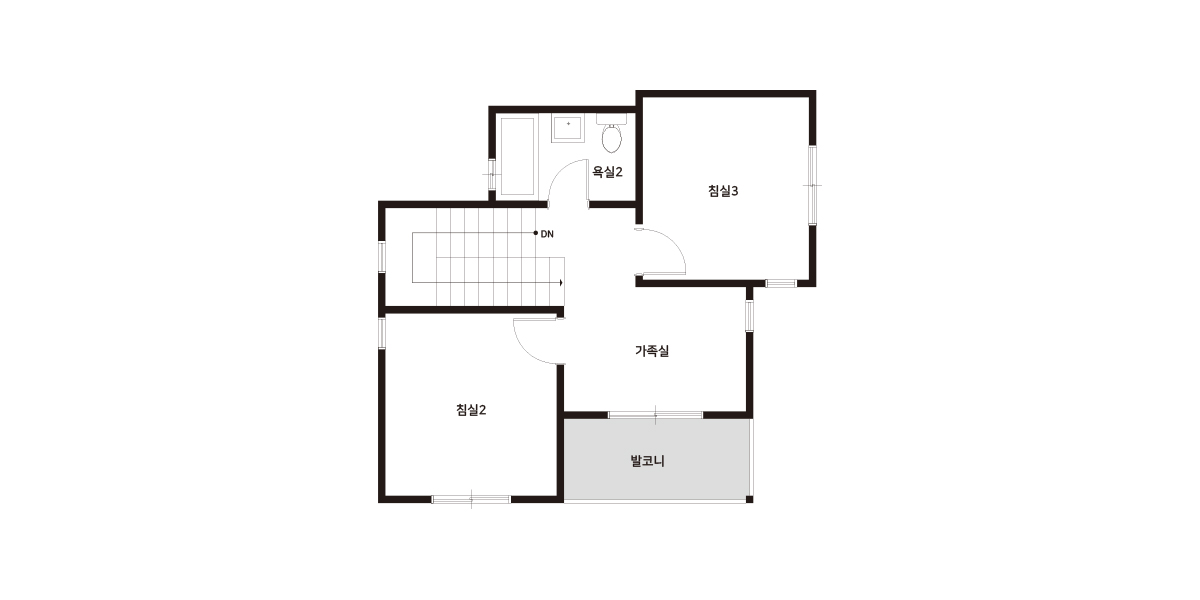 | 2F | 2층 구성: 침실2, 침실3, 욕실2, 가족실 |