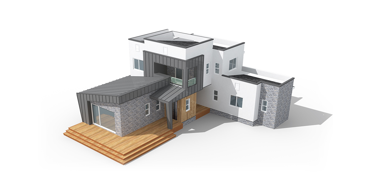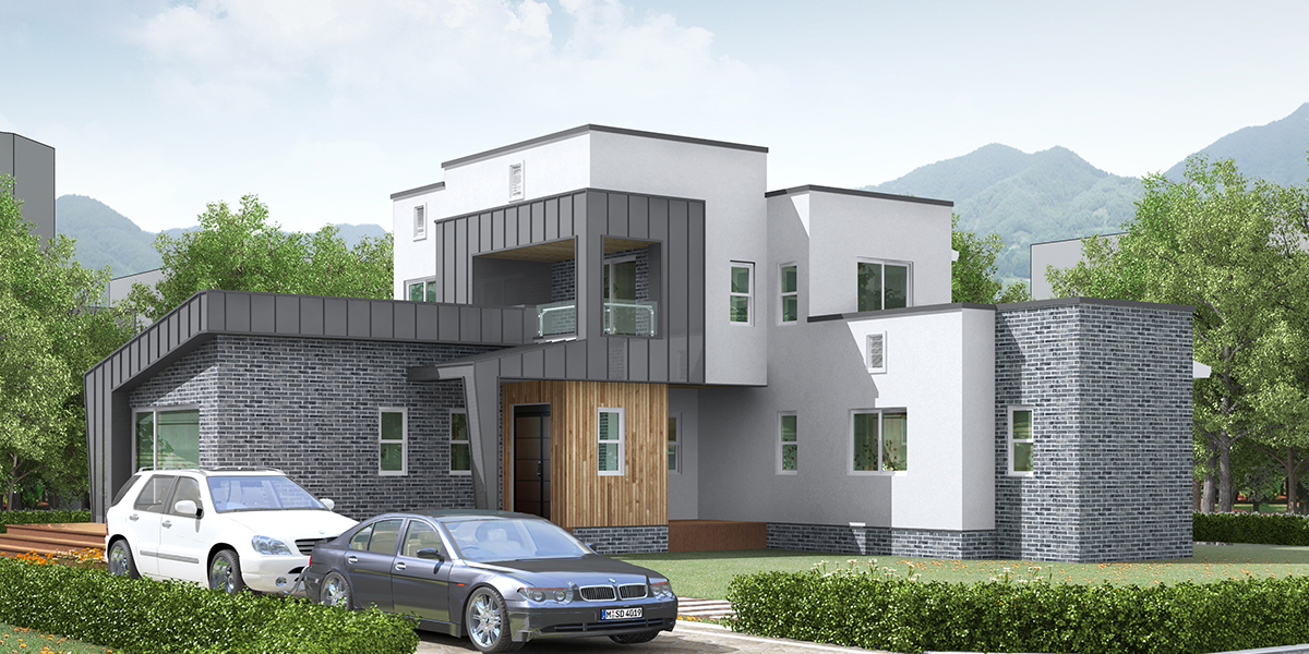 | 2층면적 | 47.21㎡ (14.28py) | 외부마감 | 리얼징크, 테라코트(플렉시텍스), 파벽돌, 적삼목 |