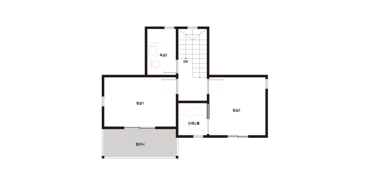 | 2F | 2층 구성: 드레스룸, 침실1, 침실2, 욕실2 |