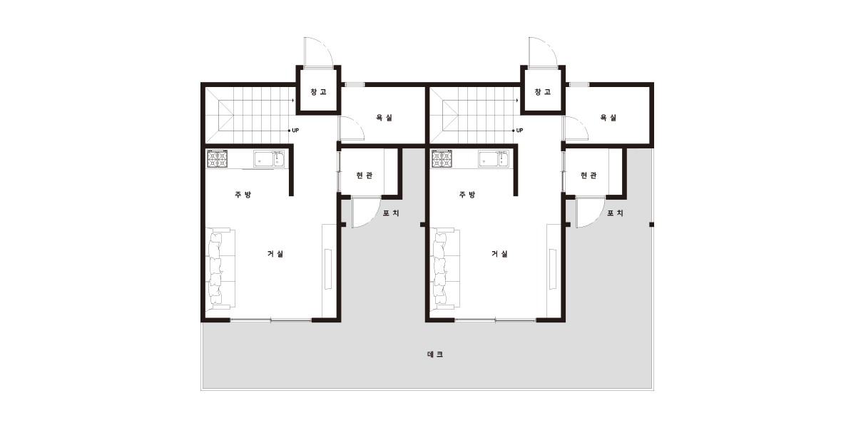 | 1층포치 / 데크 | 6.54㎡ (1.98py) / 40.96㎡ (12.39py) | 창호 | 시스템창호 |