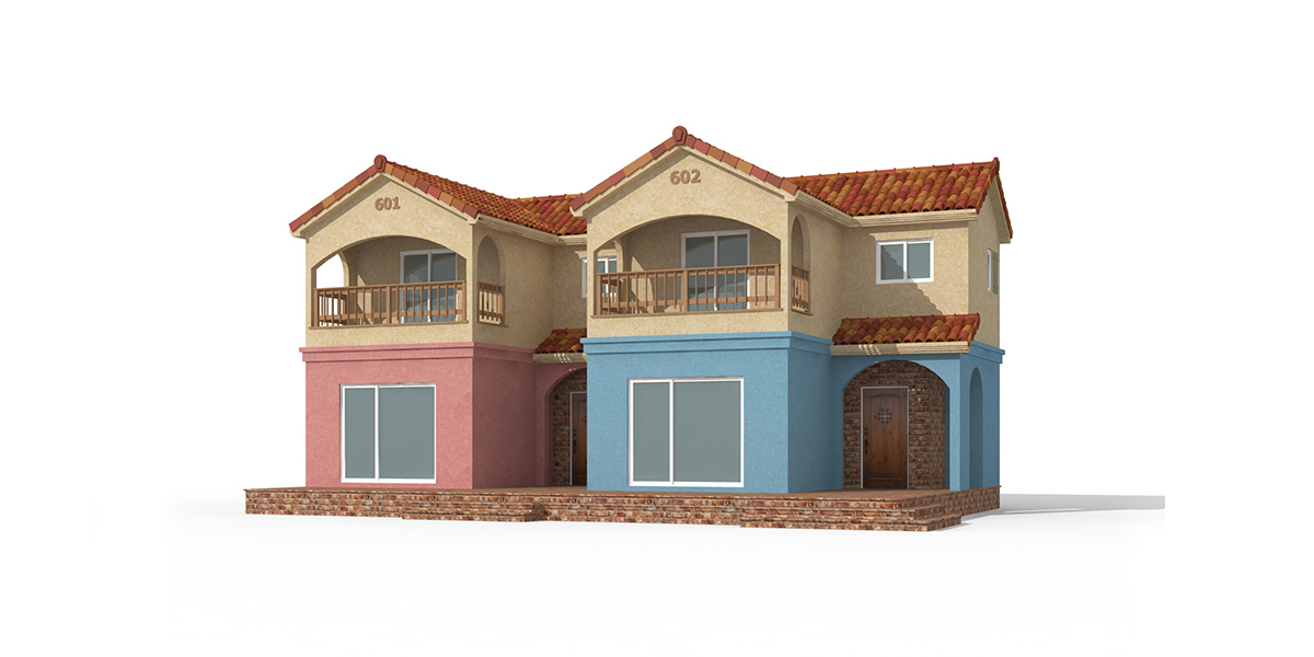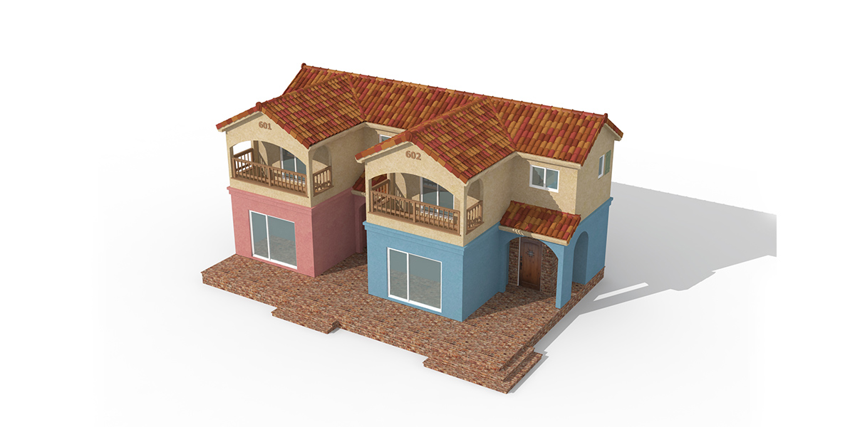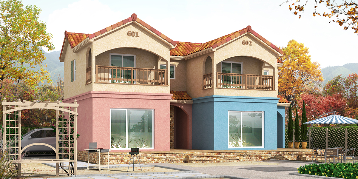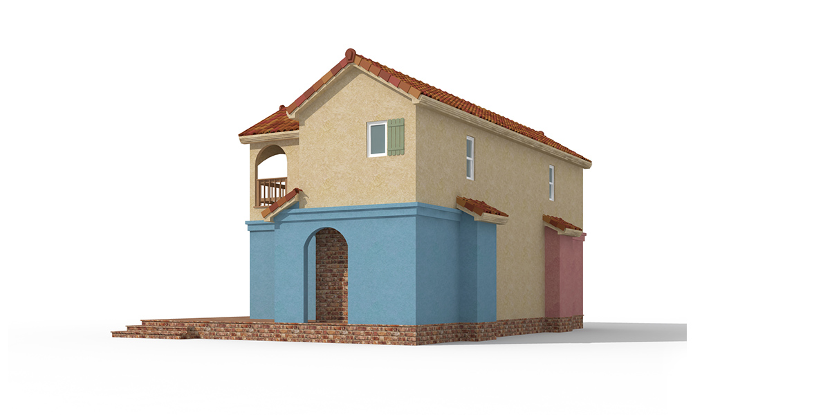 붉은 스페니쉬기와와 파스텔톤 스타코 색상이 돋보이는 지중해풍 펜션