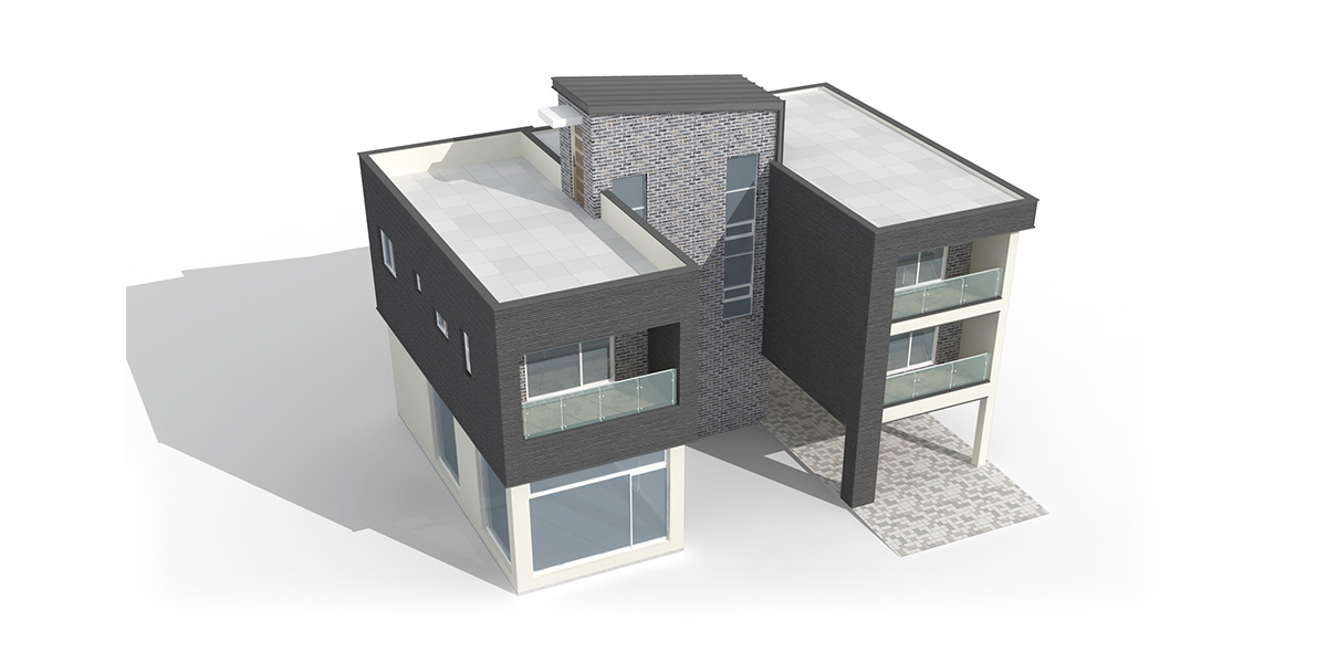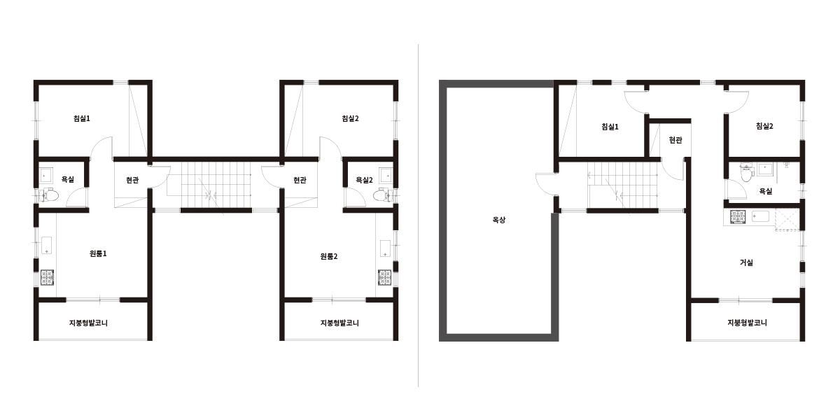 중간의 계단실을 기준으로 스킵플로어 형식을 하여