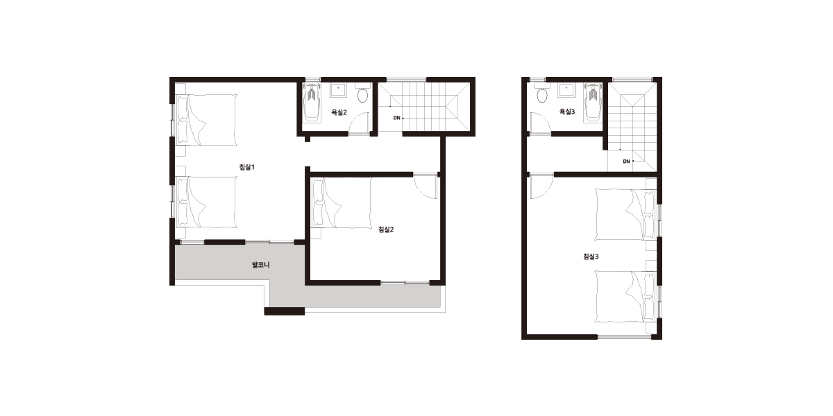 | 2F | 2층 구성: 침실1, 침실2, 침실3, 욕실2, 욕실3 |
