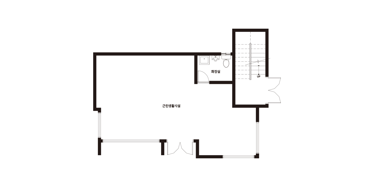 Floor Plan| 1F | 1층 구성: 근린생활시설, 화장실 |