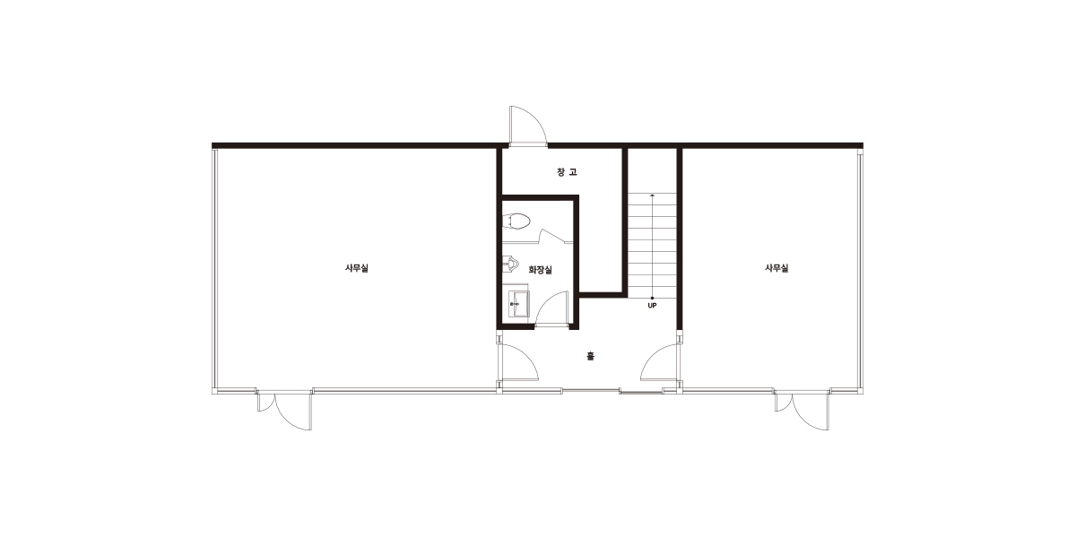 Floor Plan| 1F | 1층 구성: 근린생활시설, 홀, 화장실, 창고 |