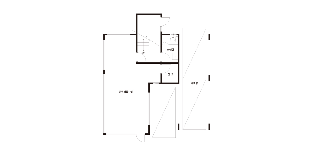 Floor Plan| 1F | 1층 구성: 근린생활시설, 화장실, 창고 |