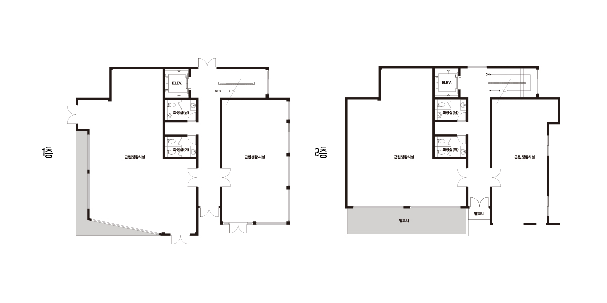 Floor Plan| 1F | 1층 구성: 근린생활시설, 화장실 (1,2층) |