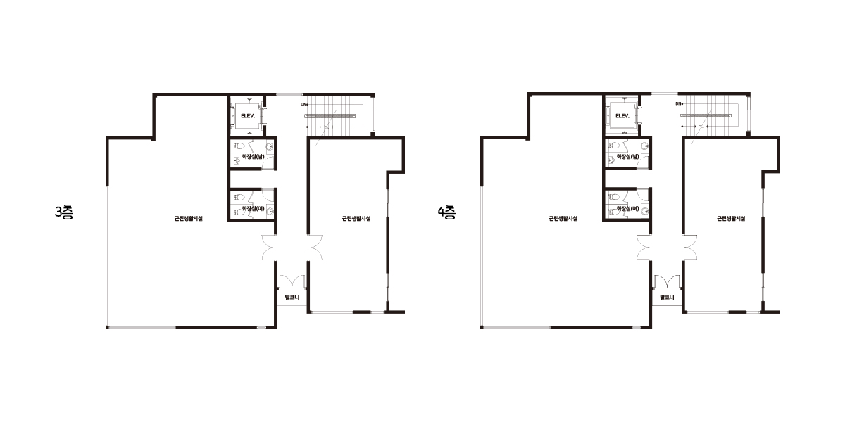 | 2F | 2층 구성: 근린생활시설, 화장실 (3,4층) |